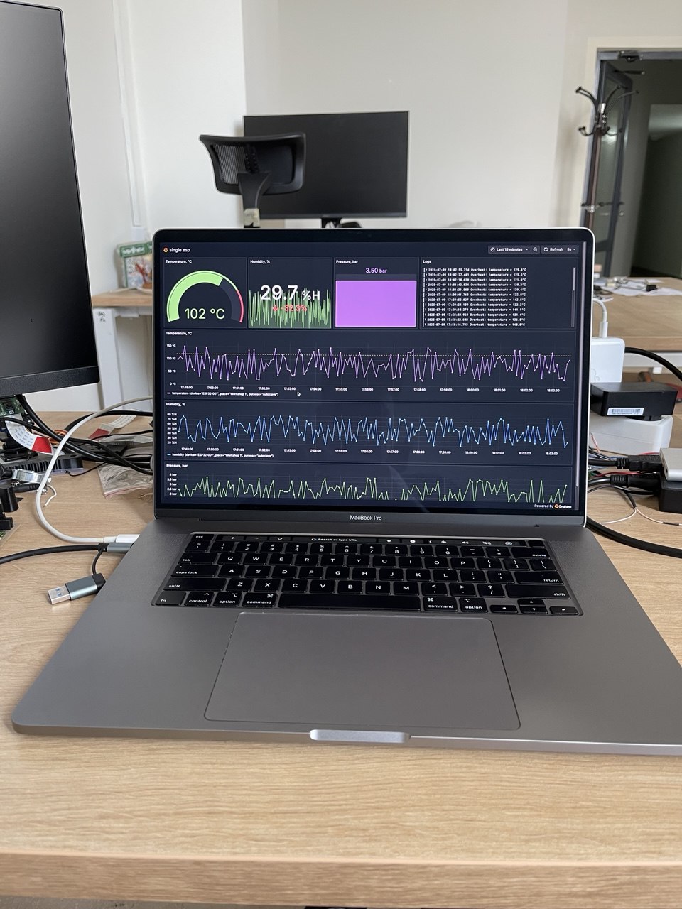 Дашборд для просмотра метрик и логов. ESP32 + InfluxDB + Grafana.