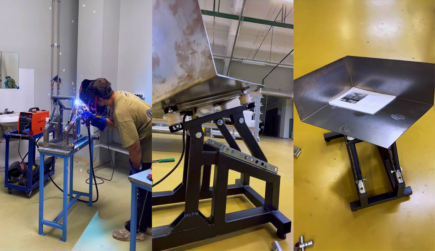 Сталкиватель для бумаги. Цельнометаллическая конструкция, регулировка угла и силы вибрации.